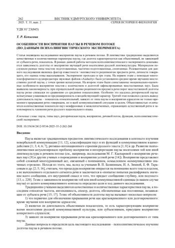4. Виноградова Ю. С., Прокаева В. О., Риехакайнен Е. И. Паузы бывают разные: многомерная классификация пауз для разметки корпусов русской устной речи // Русская речь. 2023. № 6. С. 7-23.