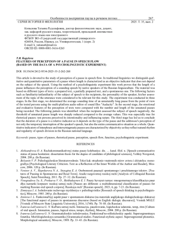 17. Тэн Хай, Андросова С. В. Особенности паузации в родной и акцентной спонтанной речи. Вестник НГУ. 2022. Т. 21 (2). С. 67-86. EDN: XTZIRJ