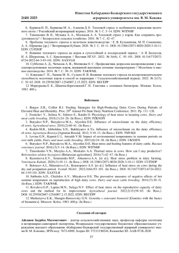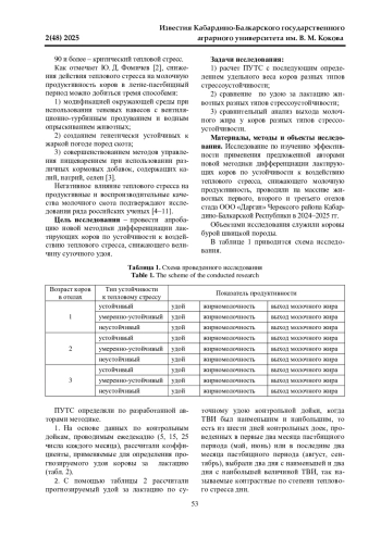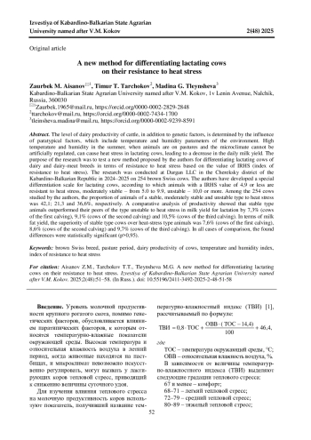 Статья: НОВЫЙ МЕТОД ДИФФЕРЕНЦИАЦИИ ЛАКТИРУЮЩИХ КОРОВ ПО УСТОЙЧИВОСТИ К ВОЗДЕЙСТВИЮ ТЕПЛОВОГО СТРЕССА (2025)