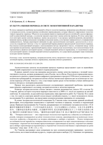 5. Кушнина Л. В., Юзманов П. Р. Экология перевода: культура vs природа // Экология языка на перекрестке наук. Материалы международной научной конференции. 11-13 ноября 2010 г. Тюмень: Изд-во ТюмГУ, 2011. С. 41-45.