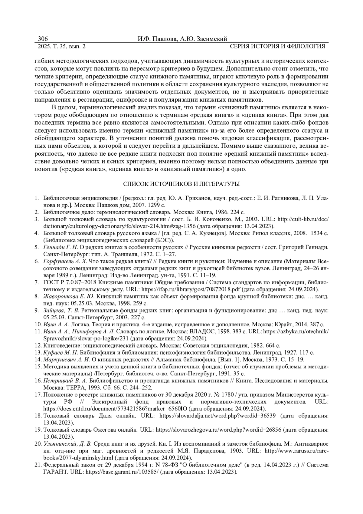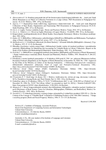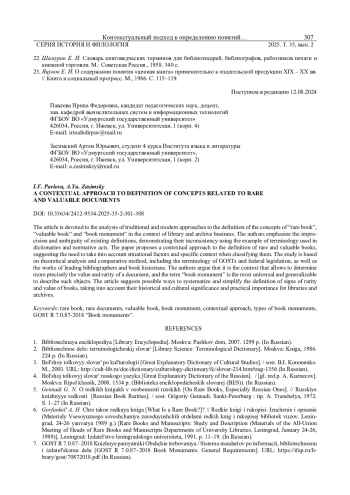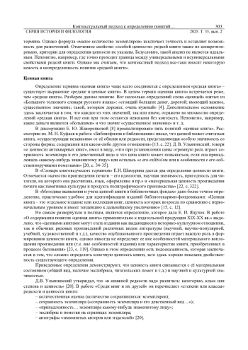 ПАВЛОВА И. Ф., ЗАСИМСКИЙ А. Ю. КОНТЕКСТУАЛЬНЫЙ ПОДХОД К ОПРЕДЕЛЕНИЮ ПОНЯТИЙ, СВЯЗАННЫХ С РЕДКИМИ И ЦЕННЫМИ ДОКУМЕНТАМИ // ВЕСТНИК УДМУРТСКОГО УНИВЕРСИТЕТА. СЕРИЯ: ИСТОРИЯ И ФИЛОЛОГИЯ. 2025. Т. 35 № 2