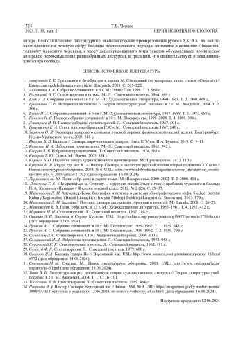 34. Широков В. А. Виктор Соснора. Верховный час // Знамя. 1998. № 9. URL: https://magazines.gorky.media/znamia/1998/9/vikt Поступила в редакцию: 12.06.2024. or-sosnora-verhovnyj-chas.html (дата обращения: 16.08.2024).