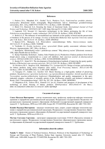 Статья: ВЛИЯНИЕ ФУНКЦИОНАЛЬНЫХ ДОБАВОК И ШОКОВОЙ ЗАМОРОЗКИ НА ПОКАЗАТЕЛИ КАЧЕСТВА ХЛЕБА (2025)