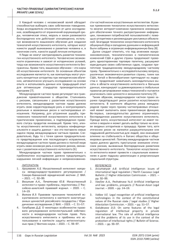 Статья: ПРАВОВОЕ РЕГУЛИРОВАНИЕ ИСПОЛЬЗОВАНИЯ ТЕХНОЛОГИЙ ИСКУССТВЕННОГО ИНТЕЛЛЕКТА В МЕЖДУНАРОДНОМ ЧАСТНОМ ПРАВЕ: ВЫЗОВЫ И РЕШЕНИЯ (2023)