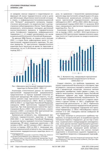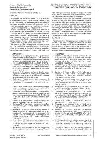1. Антонова Е.Ю. Преступления террористической направленности в эпоху цифровизации: формы деятельности и меры по противодействию // Journal of Digital Technologies and Law. 2023. Т. 1, № 1. С. 251-269. DOI: 10.21202/jdtl.2023.10 EDN: HFPMTN