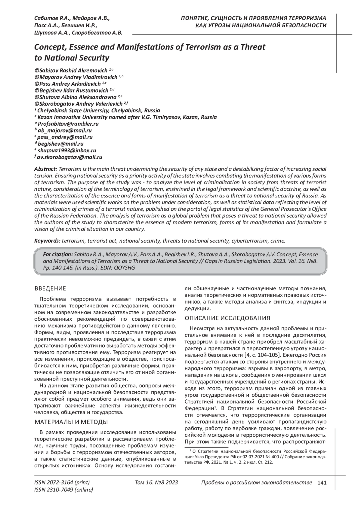 2. Безверхов А.Г. “Терроризм” и “террористический акт”: криминологический и юридический анализ // Вестник Самарской Гуманитарной академии. 2013. № 1. С. 53-66. EDN: QAZZKN