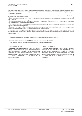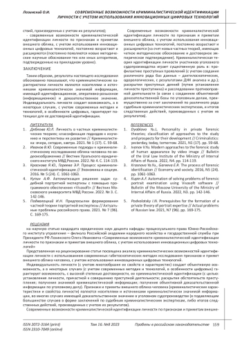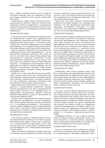ЛОЗИНСКИЙ О. И. СОВРЕМЕННЫЕ ВОЗМОЖНОСТИ КРИМИНАЛИСТИЧЕСКОЙ ИДЕНТИФИКАЦИИ ЛИЧНОСТИ ПО ПРИЗНАКАМ И ПРИМЕТАМ ВНЕШНЕГО ОБЛИКА, С УЧЕТОМ ИСПОЛЬЗОВАНИЯ ИННОВАЦИОННЫХ ЦИФРОВЫХ ТЕХНОЛОГИЙ // ПРОБЕЛЫ В РОССИЙСКОМ ЗАКОНОДАТЕЛЬСТВЕ. 2023. Т. 16 № 8 (36 СТ.)