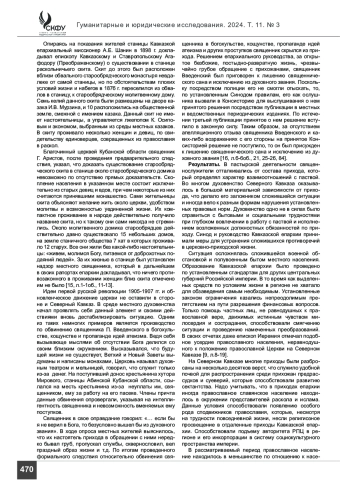 Введение. Обращение к истории становления самостоятельной Кавказской и Черноморской епархии обусловлено изучением вопроса проблемы инкорпорации Северного Кавказа в состав Российской империи. В условиях отсутствия разветвленной системы органов административного контроля и затяжного военного конфликта в первой половине XIX в., шел процесс поиска платформы национальной идентичности, что позволяло не только снизить уровень эскалации конфликта, но и провести инкорпорацию Северного Кавказа в социокультурное пространство Российской империи.