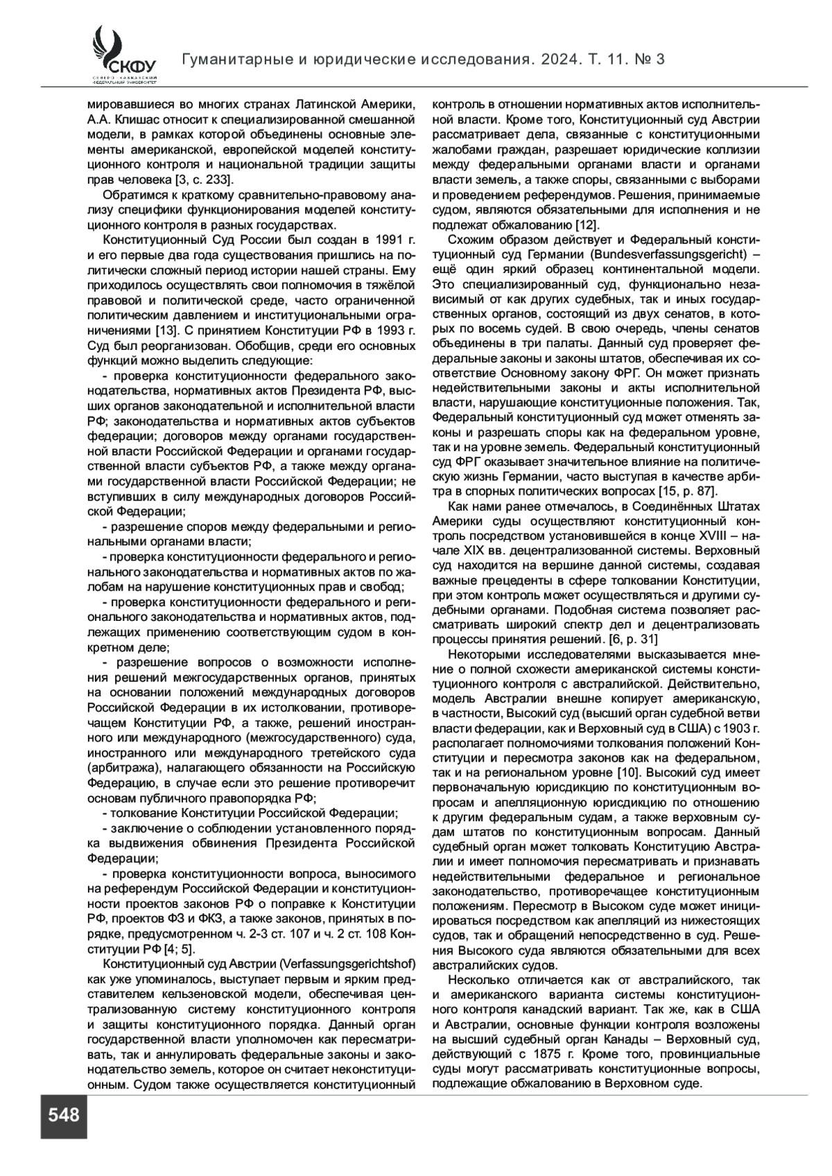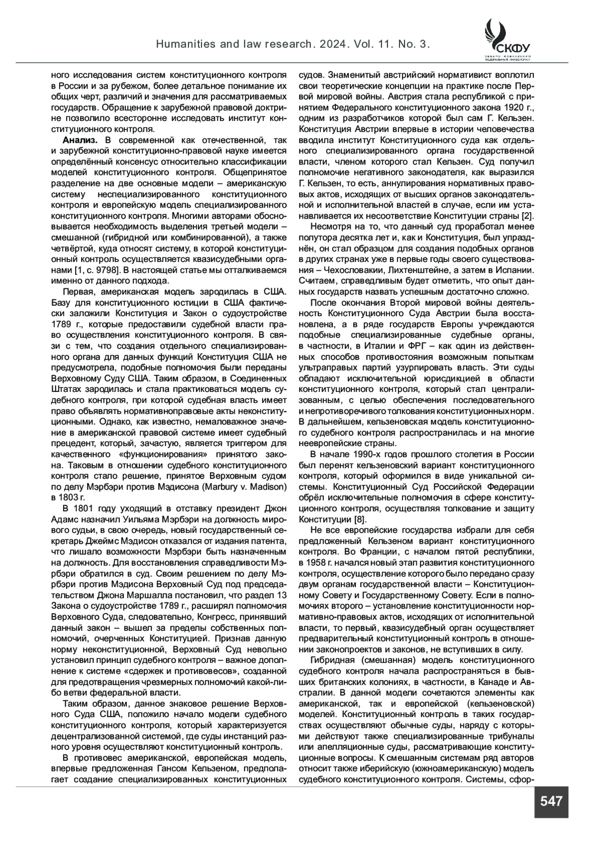 1. Гоглева К. Ю. Судебный конституционный контроль как гарантия разделения властей в Российской Федерации: дис. … канд. юрид. наук. СПб., 2023. 235 с