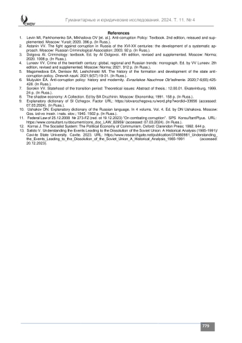 2. Астанин В. В. Борьба с коррупцией в России XVI-XX веков: развитие системного подхода. М.: Российская криминологическая ассоциация, 2003. 92 с.