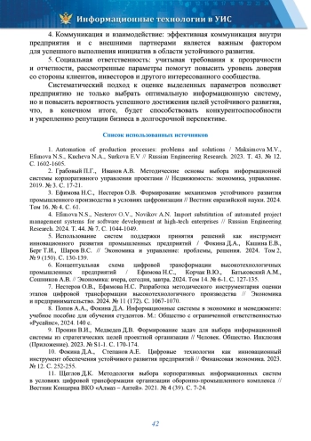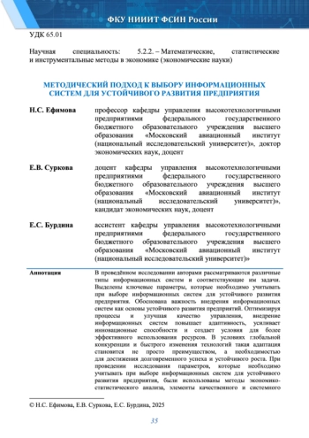 Статья: МЕТОДИЧЕСКИЙ ПОДХОД К ВЫБОРУ ИНФОРМАЦИОННЫХ СИСТЕМ ДЛЯ УСТОЙЧИВОГО РАЗВИТИЯ ПРЕДПРИЯТИЯ (2025)