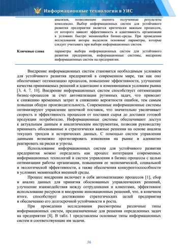 Ключевые фразы: параметры выбора информационных систем для устойчивого развития предприятия, информационные системы, внедрение информационных систем на предприятии