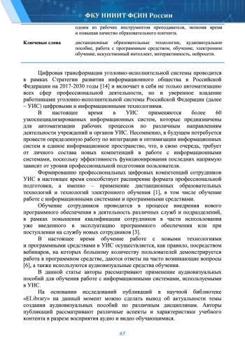 Статья: АУДИОВИЗУАЛЬНОЕ ПОСОБИЕ КАК ЭФФЕКТИВНАЯ ФОРМА ДИСТАНЦИОННОГО ОБУЧЕНИЯ СОТРУДНИКОВ УГОЛОВНО-ИСПОЛНИТЕЛЬНОЙ СИСТЕМЫ (2025)