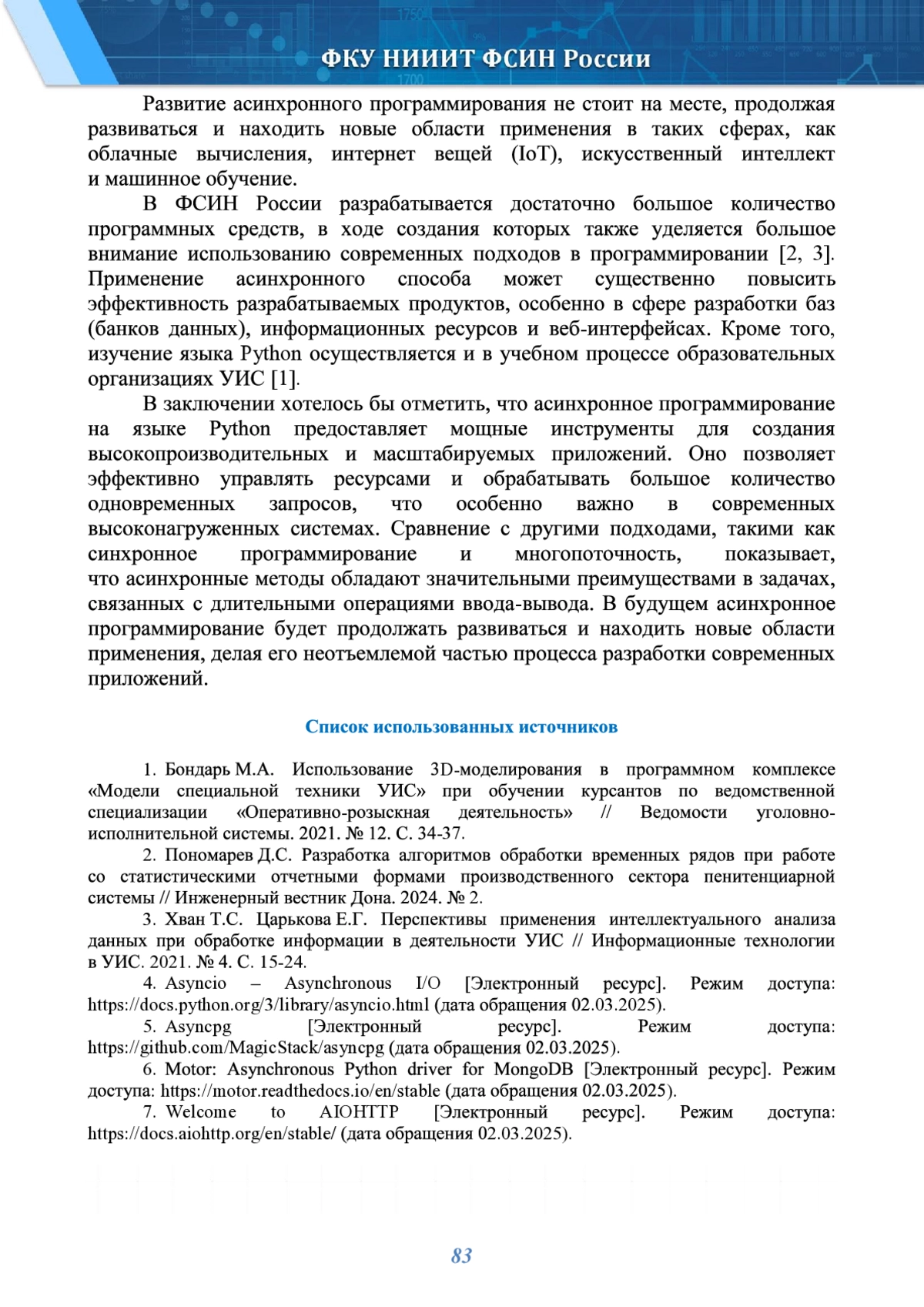 4. Asyncio - Asynchronous I/O [Электронный ресурс]. Режим доступа: https://docs.python.org/3/library/asyncio.html (дата обращения 02.03.2025).