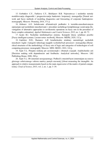 4. Поляков, Д.В. Оптимизация и управления финансовой деятельностью на основе теории нечетких множеств / Д.В. Поляков, А.И. Попов // Вестник ТГТУ. - 2020. - Т. 26, № 1. - С. 64-78. DOI: 10.17277/vestnik.2020.01.pp.064-078