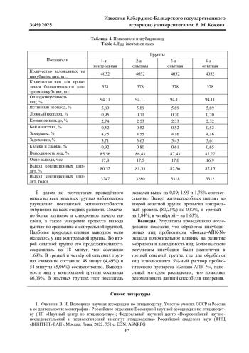 2. Абдулхаликов Р. З. Повышение продуктивных и воспроизводительных качеств кур мясных кроссов и бройлеров: дис. … д-ра с.-х. наук. Москва, 2022. 271 с. EDN: EMCJCW