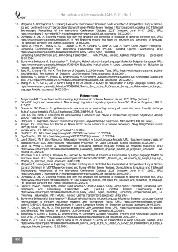 16. Stoyanova Berbatova M., Salambashev Y., Evaluating Hallucinations in Large Language Models for Bulgarian Language. URL: https://www.researchgate.net/publication/373894930_Evaluating_Hallucinations_in_Large_Language_Models_for_Bulgarian_Language. (accessed: 26.02.2024).