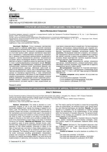СМИРНОВА И. В. СТРАТЕГИЯ АПЕЛЛЯЦИИ К СМУЩЕНИЮ / ЧУВСТВУ ВИНЫ // ГУМАНИТАРНЫЕ И ЮРИДИЧЕСКИЕ ИССЛЕДОВАНИЯ. 2024. ТОМ 11, № 4