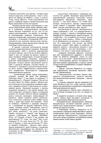 Ключевые фразы: мошенничество, дискурс, мошеннический дискурс, ЛИНГВОБЕЗОПАСНОСТЬ, речевые манипуляции, КОММУНИКАТИВНЫЕ СТРАТЕГИИ, смущение, стыд, воздействие на адресата, традиционные ценности, СЕМЬЯ, ДРУЖБА