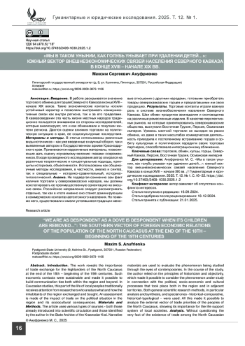 Результаты. Торговые контакты играли важную роль в системе жизнеобеспечения населения Северного Кавказа. Шел обмен продуктов земледелия и скотоводства на различные ремесленные изделия. В качестве перспективных рынков, на которые ориентировались северокавказские общества, выступали Восточная Грузия, Персия, Османская империя. Уровень местной торговли не выходил за рамки обмена, но даже в таких масштабах коммерческая деятельность приводила к постепенному встраиванию горцев в орбиту культурных и политических парадигм своих торговых партнеров, способствовала интеграционному сближению.
