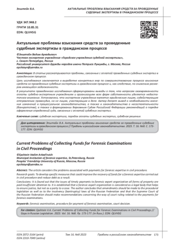 Kistanova E. Problems of payment to experts for the preparation of forensic examination in arbitration and civil proceedings // Labor Law. 2017. No. 4. P. 61 - 70.