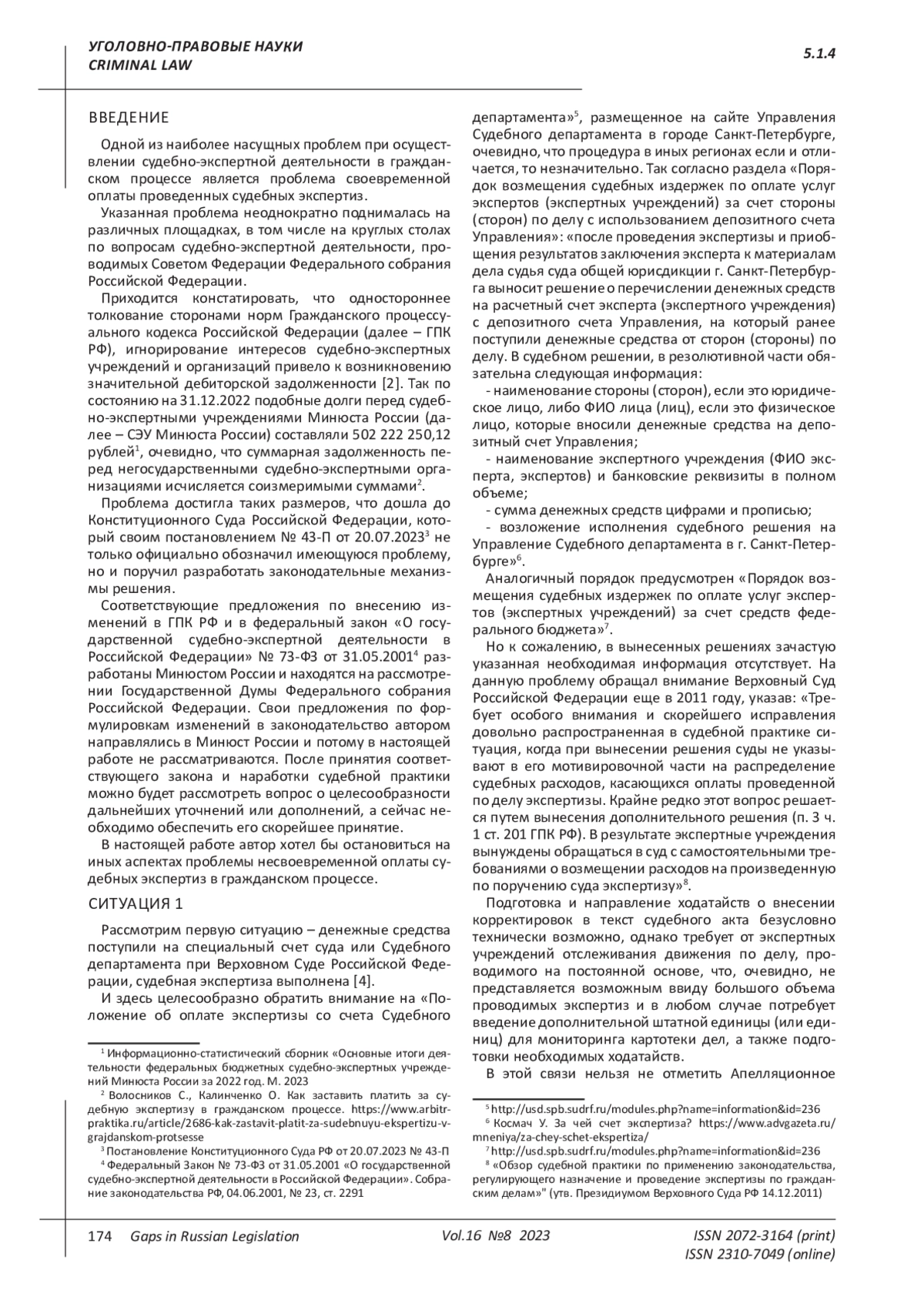 3. Кистанова Е. Проблемы оплаты экспертам вознаграждения за подготовку судебной экспертизы в арбитражном и гражданском процессе // Трудовое право. 2017. № 4. С. 61 - 70.