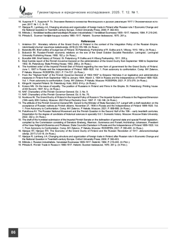 8. Klinge M. Imperial Finland. St. Petersburg: Kolo; 2003. 614 p. (In Russ.).
