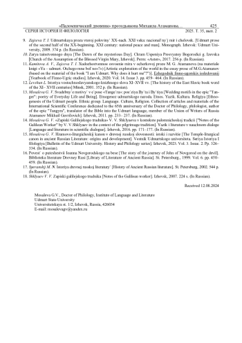 11. Камитова А. В., Зайцева Т. И. Художественное освоение мира в очерковой прозе М. Г. Атаманова (на материале книги “Я - удмурт. Отчего мне больно”?“) // Ежегодник финно-угорских исследований. Ижевск, 2020. Т. 14. Вып. 3. С. 459-464.