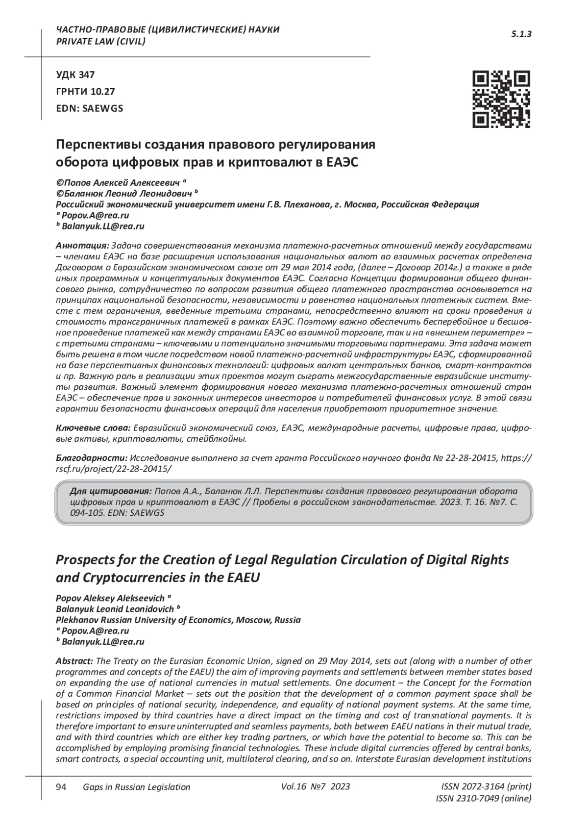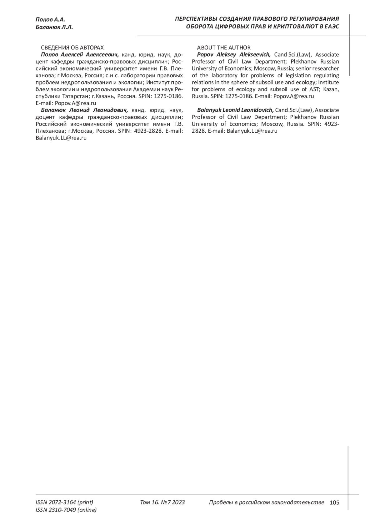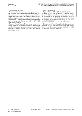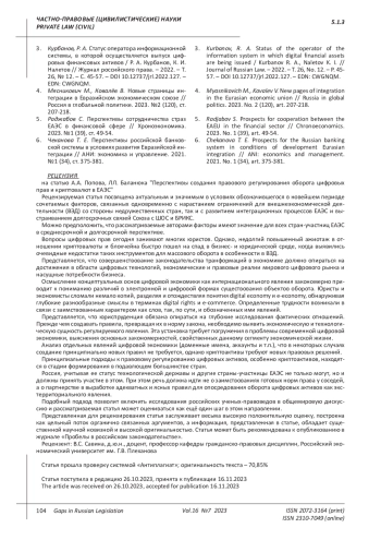 Kurbanov, R. A. Status of the operator of the information system in which digital financial assets are being issued / Kurbanov R. A., Naletov K. I. // Journal of Russian Law. - 2022. - T. 26, No. 12. - P. 45-57. -. DOI: 10.12737/jrl.2022.127 EDN: CWGNQM