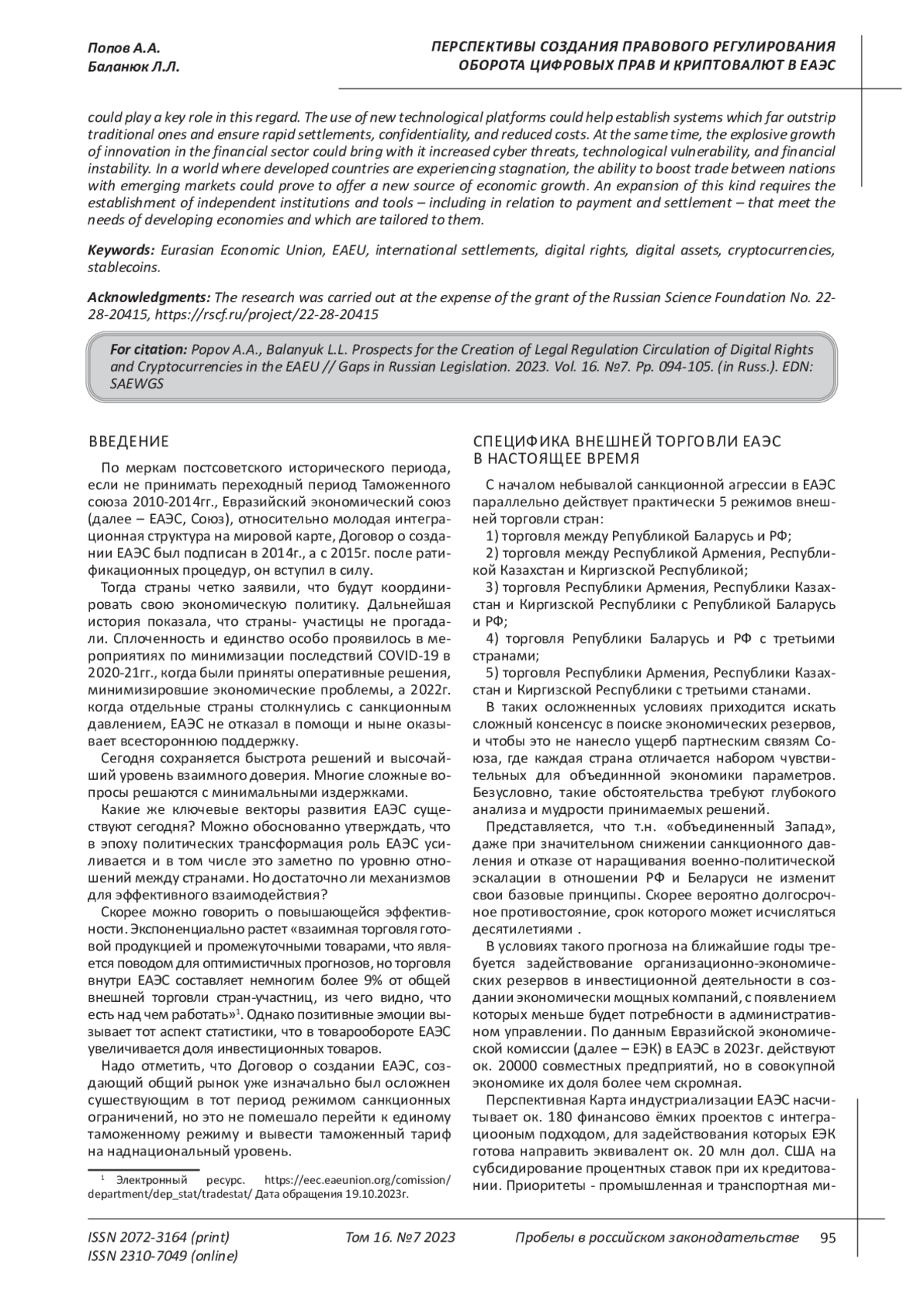 3. Курбанов, Р. А. Статус оператора информационной системы, в которой осуществляется выпуск цифровых финансовых активов / Р. А. Курбанов, К. И. Налетов // Журнал российского права. - 2022. - Т. 26, № 12. - С. 45-57. -. DOI: 10.12737/jrl.2022.127 EDN: CWGNQM