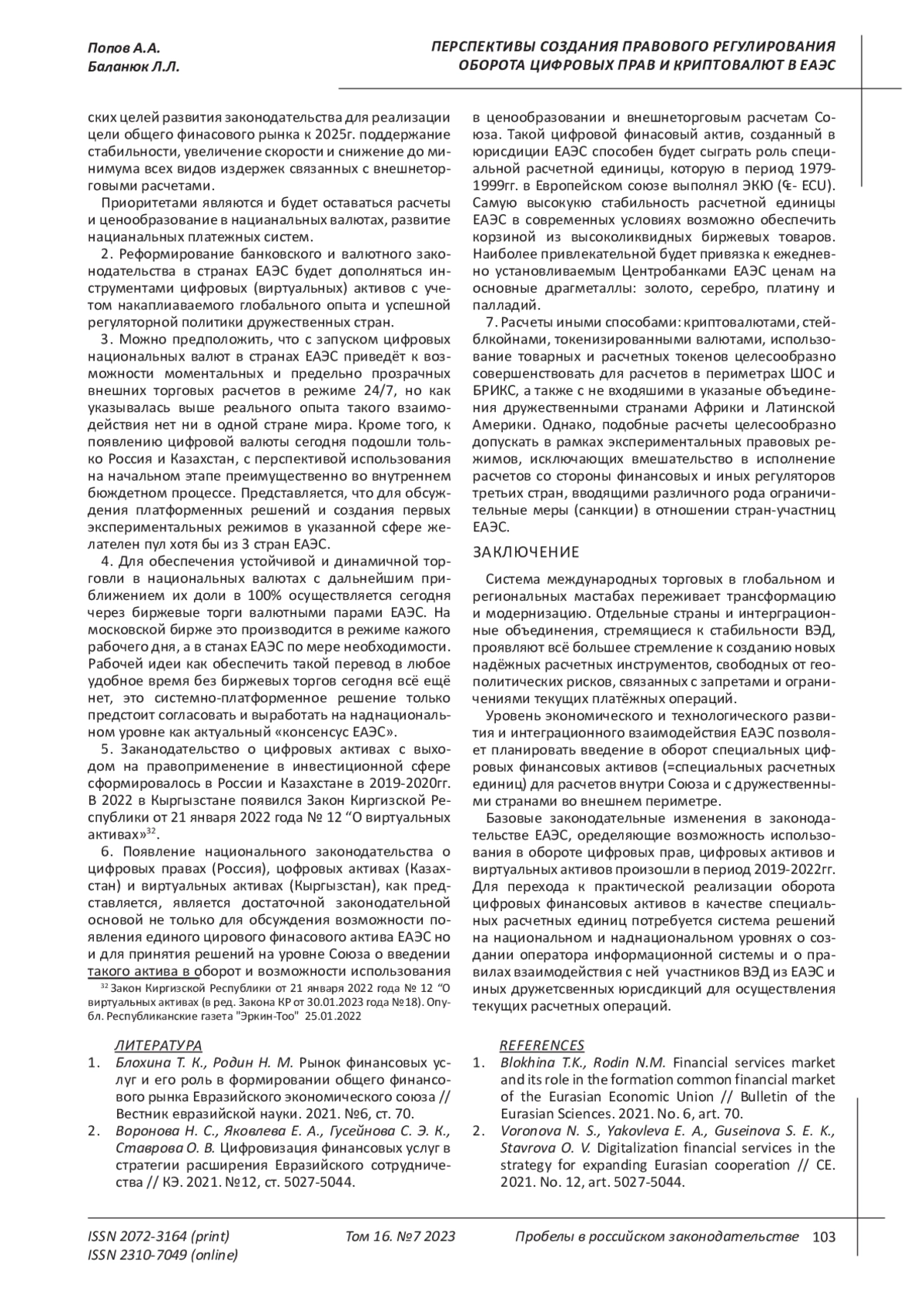 2. Воронова Н. С., Яковлева Е. А., Гусейнова С. Э. К., Ставрова О. В. Цифровизация финансовых услуг в стратегии расширения Евразийского сотрудничества // КЭ. 2021. №12, ст. 5027-5044.