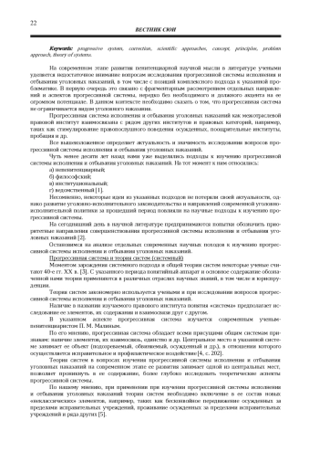 На современном этапе развития пенитенциарной научной мысли в литературе учеными уделяется недостаточное внимание вопросам исследования прогрессивной системы исполнения и отбывания уголовных наказаний, в том числе с позиций комплексного подхода к указанной проблематике. В первую очередь это связано с фрагментарным рассмотрением отдельных направлений и аспектов прогрессивной системы, нередко без необходимого и должного акцента на ее огромном потенциале. В данном контексте необходимо сказать о том, что прогрессивная система не ограничивается видом уголовного наказания.