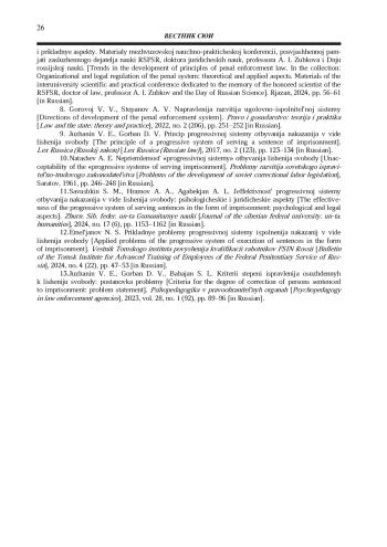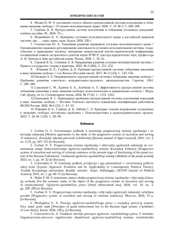 11. Савушкин С. М., Храмов А. А., Агабекян А. Л. Эффективность прогрессивной системы отбывания наказания в виде лишения свободы: психологические и юридические аспекты // Журн. Сиб. федер. ун-та. Гуманитарные науки. 2024. № 17 (6). С. 1153-1162.
