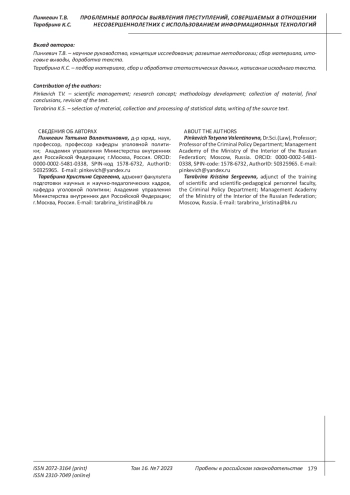 Brief description of the state of crime in the Russian Federation for 2016 - 2022 [Electronic resource]. Official website of the Ministry of Internal Affairs of the Russian Federation. - URL: https://MVD.RF/reports/item/32515852/ (access date: 09.20.2023).