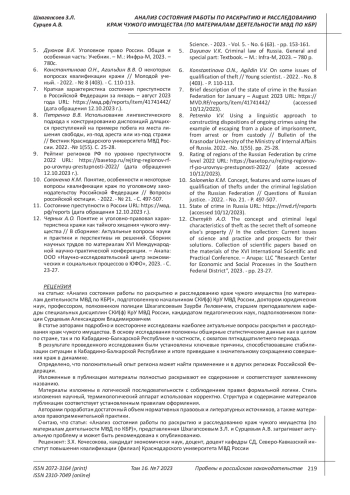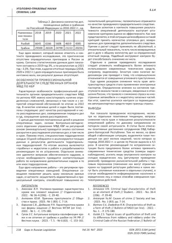 7. Краткая характеристика состояния преступности в Российской Федерации за январь - август 2023 года URL: https://MVD.RF/reports/item/41741442// (дата обращения 12.10.2023 г.).