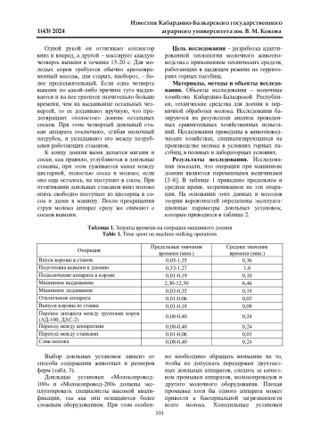 Доение коров вакуумными доильными машинами проводится по следующей технологии [1]: подготовка коров к доению, подключение аппарата, доение, заключительный массаж, додой и отключение аппарата.