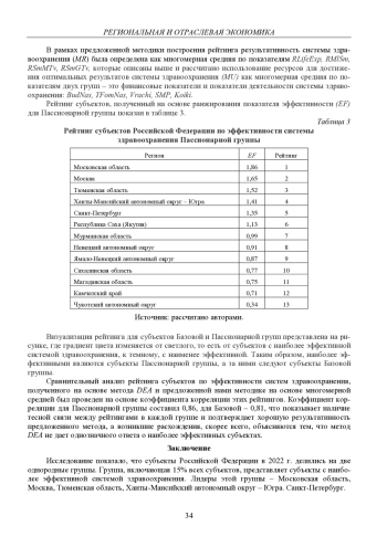 Ключевые фразы: рейтинг субъектов, эффективность системы здравоохранения, ресурсы здравоохранения, кластерный анализ, многомерная средняя, dea