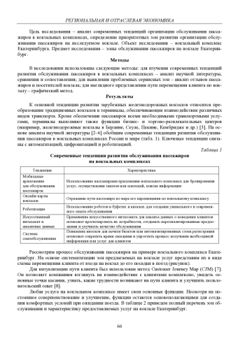 В настоящее время продолжается активное развитие железнодорожных вокзалов с целью их превращения в современные транспортно-пересадочные узлы с развитой общественно-деловой функцией, направленной на удовлетворение многообразных потребностей всех категорий клиентов ОАО «РЖД». В статье представлены результаты анализа современных тенденций организации обслуживания пассажиров в вокзальных комплексах и определены приоритетные направления совершенствования сервисных зон на вокзалах
