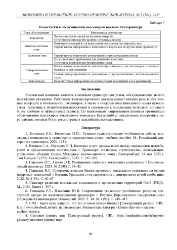 4. 	Паршина В.С. Совершенствование бизнес-процессов вокзального комплекса на основе цифровых технологий // Вестник Уральского государственного университета путей сообщения. 2022. № 4 (56). С. 60-67.  EDN: YQRSYT