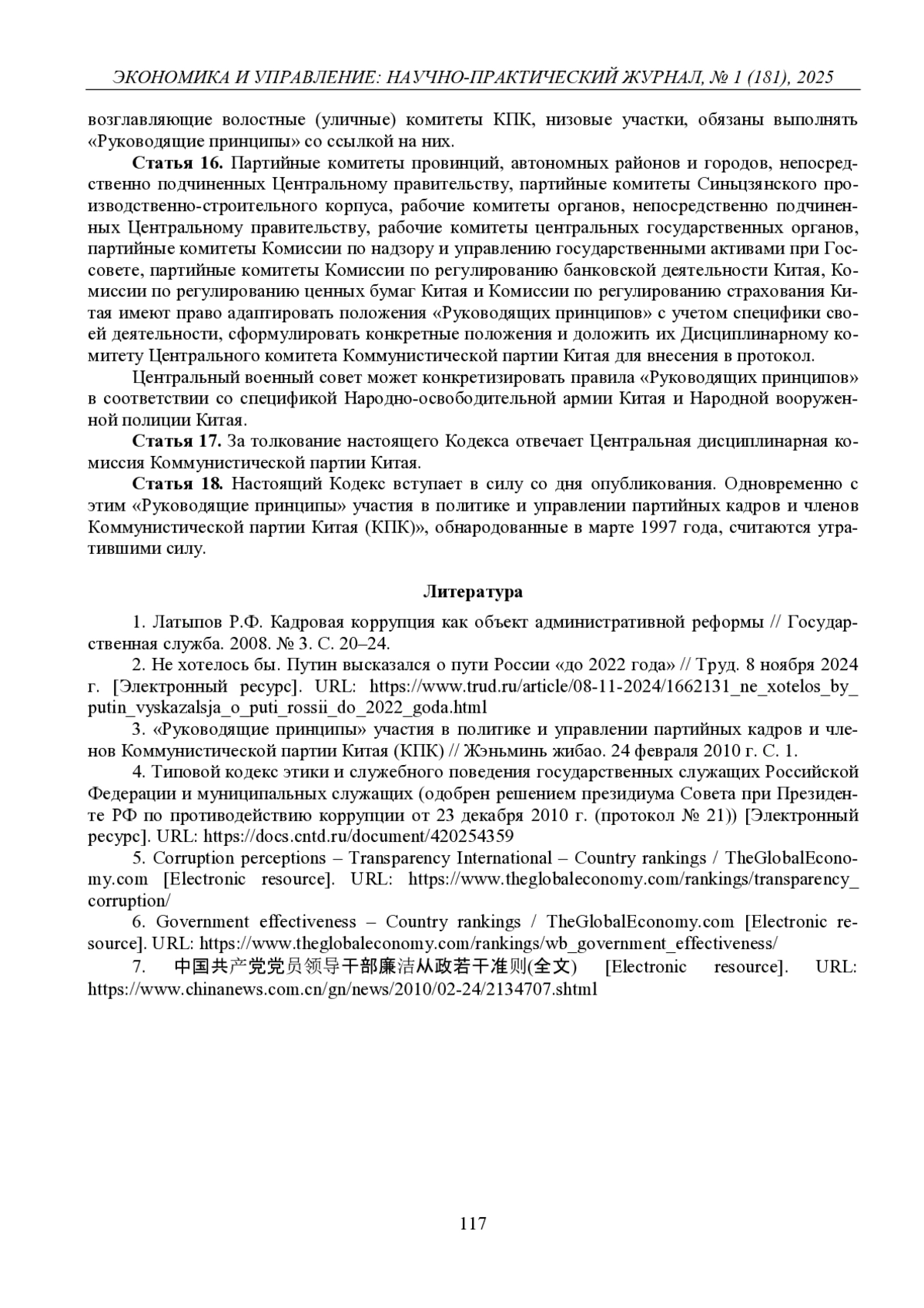 3. “Руководящие принципы” участия в политике и управлении партийных кадров и членов Коммунистической партии Китая (КПК) // Жэньминь жибао. 24 февраля 2010 г. С. 1.