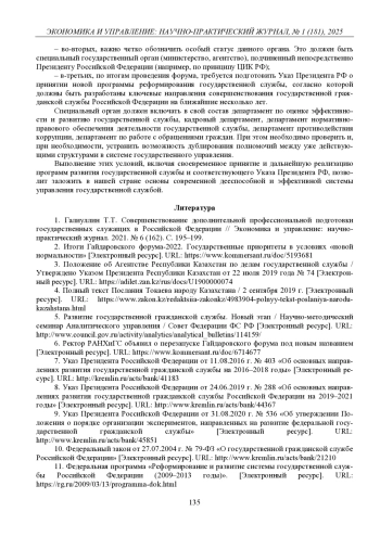 Проблемы реформирования государственной службы в Российской Федерации остаются по-прежнему актуальными и обусловлены тем что, требуют постоянного внимания и своевременного решения. Это проблемы нормативно-правого обеспечения госслужбы, профессиональной подготовки и обучения государственных служащих, противодействия коррупции среди чиновников и т. д. Однако последнее детальное обсуждение направлений развития и реформирования системы государственной службы в Российской Федерации проходило в начале 2022 года на Гайдаровском форуме [2], где рассматривались вопросы развития государственной службы на современном этапе, возникающие сложности и нормативные противоречия, их эффективное преодоление, формирование чиновника будущего и т. д. Цель данной работы – разработка рекомендаций по реформированию системы управления государственной службой в Российской Федерации на основе применения успешного опыта зарубежных стран.