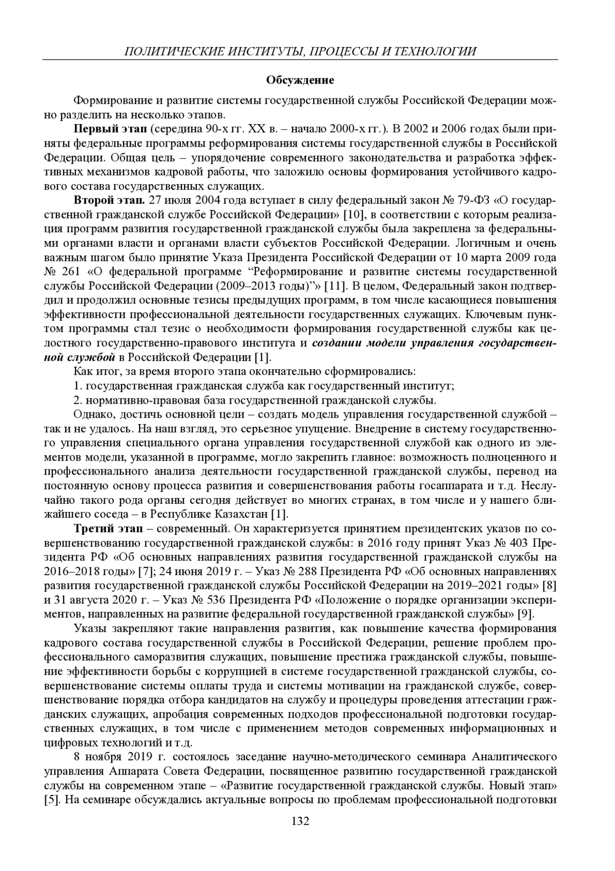 9. 	Указ Президента Российской Федерации от 31.08.2020 г. № 536 “Об утверждении Положения о порядке организации экспериментов, направленных на развитие федеральной государственной гражданской службы” [Электронный ресурс]. URL: http://www.kremlin.ru/acts/bank/45851.