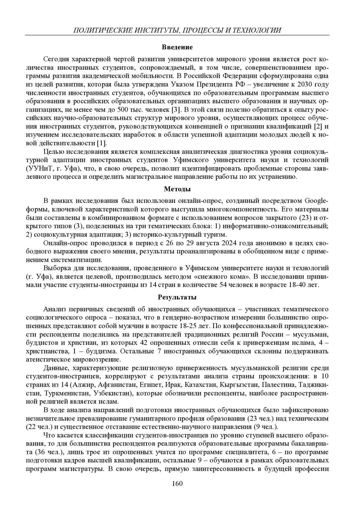 Статья: УПРАВЛЕНИЕ СОЦИОКУЛЬТУРНОЙ АДАПТАЦИЕЙ ИНОСТРАННЫХ СТУДЕНТОВ: ОПЫТ УФИМСКОГО УНИВЕРСИТЕТА НАУКИ И ТЕХНОЛОГИЙ (2025)