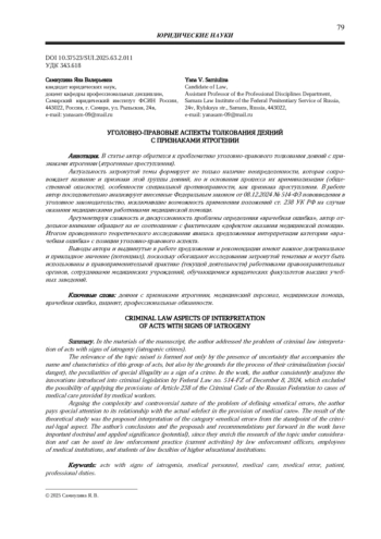 В статье автор обратился к проблематике уголовно-правового толкования деяний с признаками ятрогении ( ятрогенные преступления).