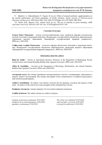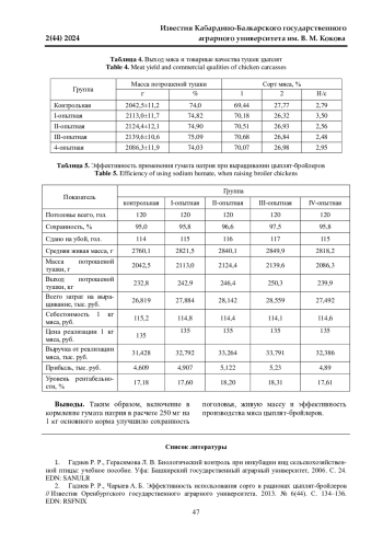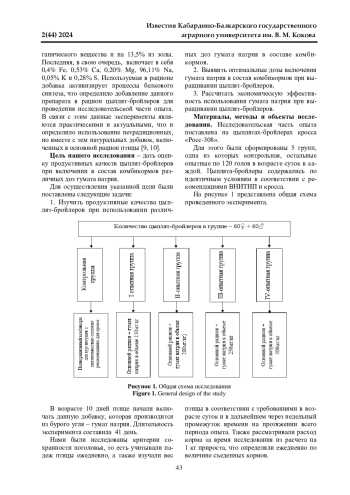 Статья: ПРОДУКТИВНЫЕ КАЧЕСТВА ЦЫПЛЯТ-БРОЙЛЕРОВ ПРИ ИСПОЛЬЗОВАНИИ ГУМАТА НАТРИЯ (2024)