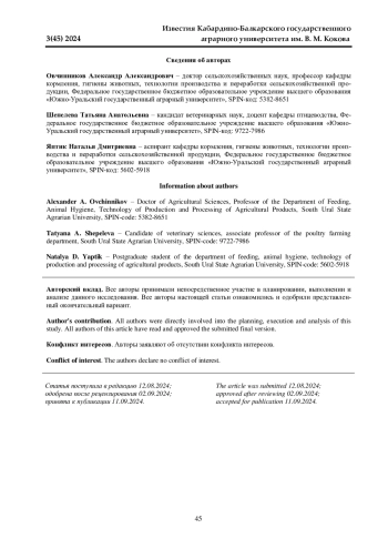 Ключевые фразы: цыплята-бройлеры, кормовая добавка фитобиотика и пребиотика, переваримость и усвоение питательных веществ, баланс азота