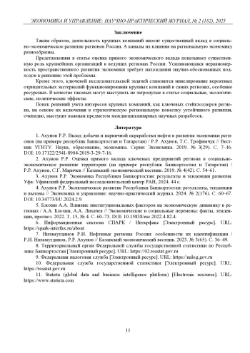 1. Ахунов Р.Р. Вклад добычи и первичной переработки нефти в развитие экономики регионов (на примере республик Башкортостан и Татарстан) / Р.Р. Ахунов, Т.С. Трофимчук // Вестник УГНТУ. Наука, образование, экономика. Серия: Экономика. 2019. № 3(29). С. 7-16. DOI: 10.17122/2541-8904-2019-3-29-7-16