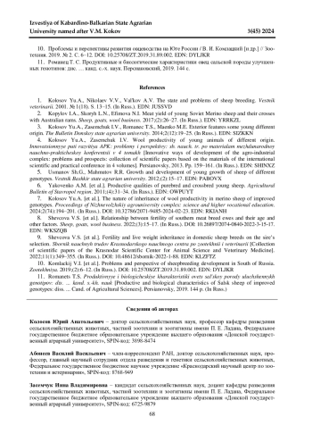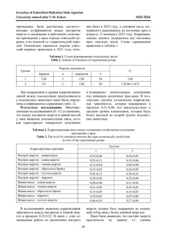 Статья: УРОВЕНЬ ВЗАИМОСВЯЗЕЙ МЕЖДУ ПРИЗНАКАМИ ПРОДУКТИВНОСТИ У ОВЕЦ ПОРОДЫ СОВЕТСКИЙ МЕРИНОС И ИХ ПОМЕСЕЙ СО СТАВРОПОЛЬСКОЙ ПОРОДОЙ (2024)