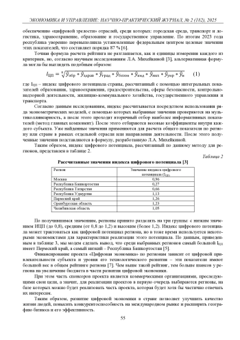 3. Михейкина Л.А. Алгоритм измерения и оценки цифрового потенциала субъектов Российской Федерации в рамках цифровой трансформации // Экономика и предпринимательство. 2023. № 9(158). С. 492-498. DOI: 10.34925/EIP.2023.158.09.090 EDN: UIJAZS