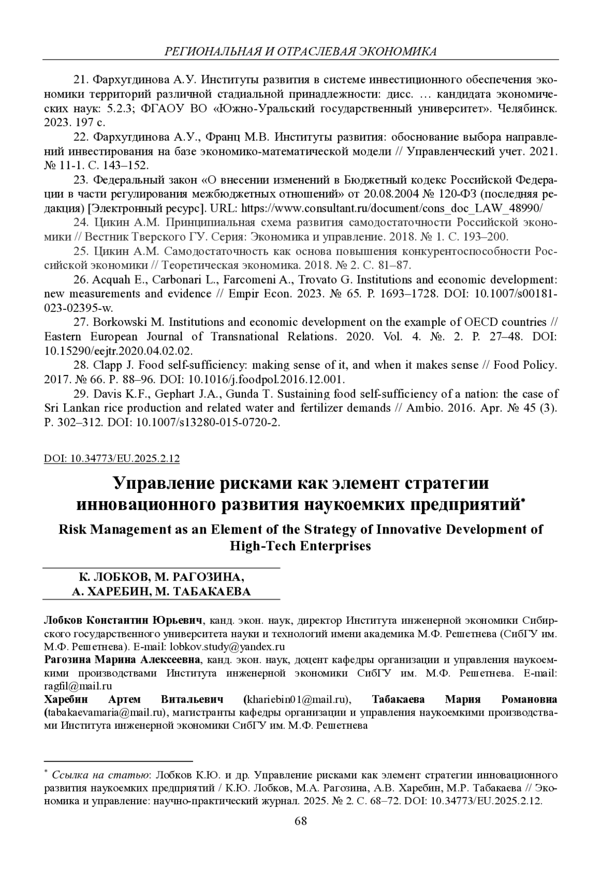 3. Галайко В.В., Юрковская Г.И., Харебин А.В. Развитие взаимодействия с высшими учебными заведениями как элемент стратегии инновационного развития наукоемких предприятий // Вестник Кемеровского государственного университета. Серия: Политические, социологические и экономические науки. 2024. Т. 9. № 4. С. 630-641. EDN: JYBMKG
